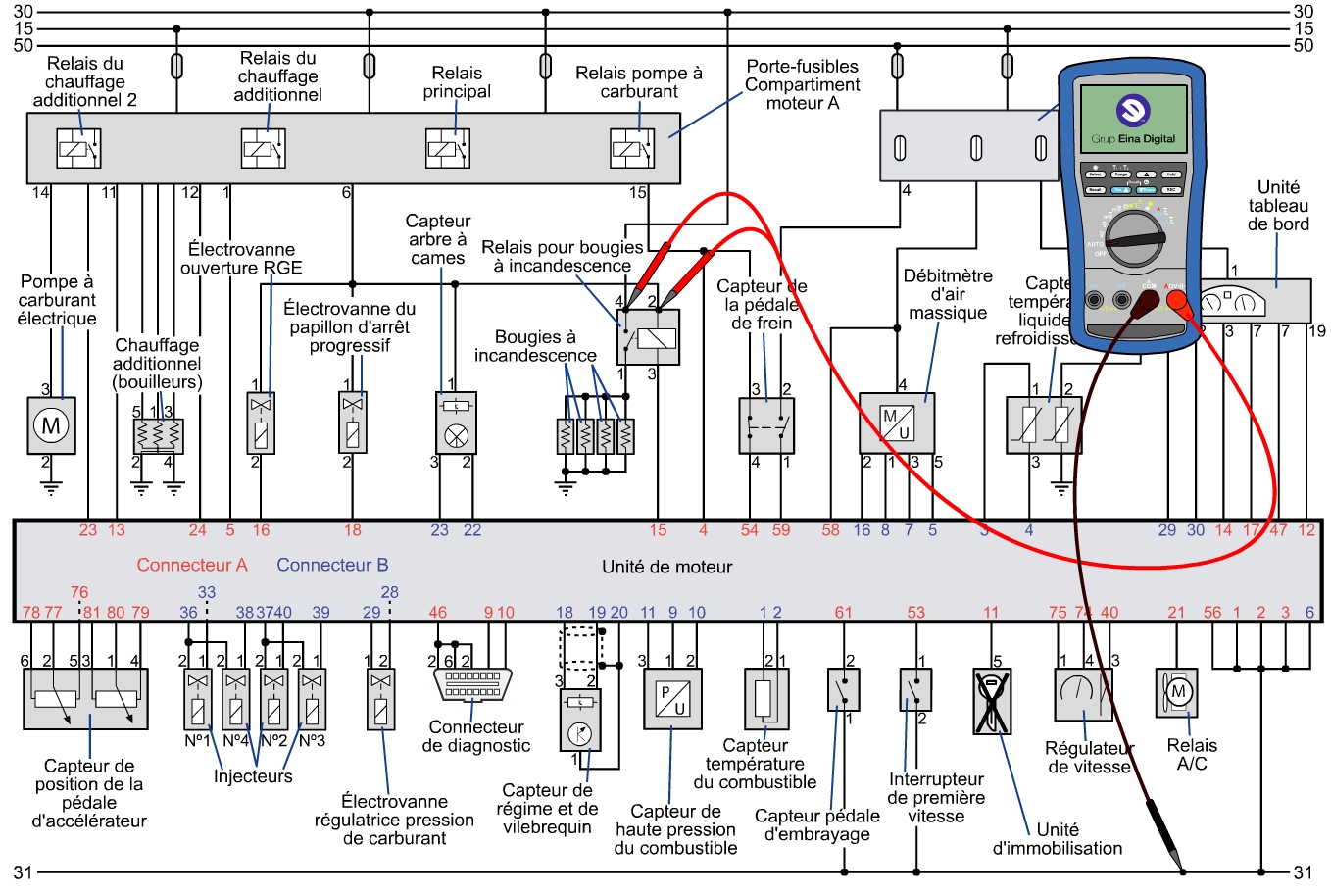 nous procéderons à la mesure de l’alimentation du relais de préchauffage. Le