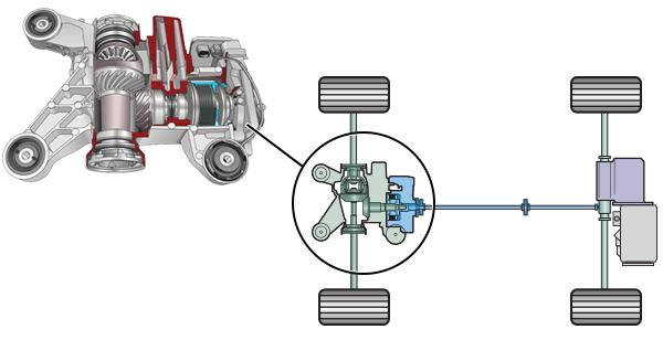 La répartition des forces de traction n’est plus déterminée par le degré de patinage du véhicule, mais par les conditions de conduite du véhicule. Au moyen du CAN Bus, l’unité de commande échange des données avec le système de freinage et la gestion du moteur, à l'aide des capteurs de régime des roues du système ABS et du signal de l’accélérateur.